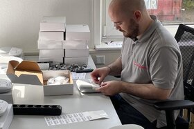 Neben der Aufbereitung kümmert sich das Team auch um neue Geräte. Sie werden programmiert, getestet und mit der Notrufzentrale verbunden. Jeder Alarmton wird geprüft – und wer mag, kann sogar die „Schalldämpfer“ von Mitarbeiterin Doris Reinhold bestaunen: kleine handgenähte Kissen, gefüllt mit Vogelsand, um die Testgeräusche zu dämpfen.
