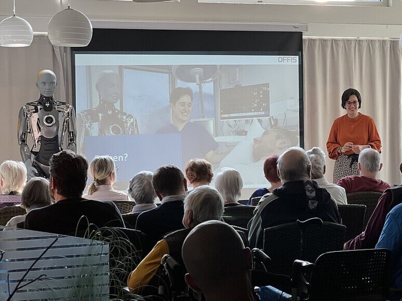Was passiert, wenn ein humanoider Roboter plötzlich im Aufenthaltsraum eines Seniorenheims steht, Geschichten erzählt, Lieder anstimmt oder zu kleinen Bewegungsübungen einlädt? Genau das untersucht das OFFIS – Institut für Informatik in mehreren Studien mit dem Roboter Ameca.